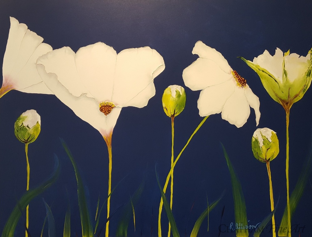 Three Ice Poppies on Navy 81510C